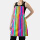 This apron has a design of spring stripes in pink, yellow, orange, green, blue, and purple.