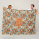 Warm Terracotta Copper Pastel Green Fall Flowers Fleece Blanket