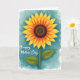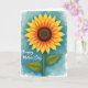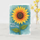 Designed with a softly painted floral illustration, this card centers on a fully open flower that feels like it’s leaning in with friendly warmth ❤️. The petals shift from sunny yellow at the tips into richer orange closer to a dark brown, textured center, giving the bloom a gentle, affectionate glow. A sturdy green stem drops down the page, with two detailed green leaves spreading out like welcoming arms. Behind it, a misty wash of teal and aqua creates a calm setting that makes the warm flower tones stand out. The cool background and glowing petals together suggest an easy closeness, like a quiet moment shared between friends. In the lower left, a small line of white lettering sits lightly over the color wash, kept unobtrusive so the artwork stays front and center 🌼. The painted layers show soft blending in the petals and background, with slightly darker pooling around the flower’s center and along the leaf veins. The background remains mottled and airy, fading from deeper teal near the edges into paler aqua around the flower.