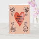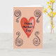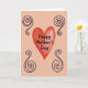 Designed with a warm, painted look, this Mother’s Day card centers on a large heart filled with translucent washes of crimson and orange that blend softly like a gentle embrace ❤️. The heart’s watercolor texture feels organic and tender, as if it was brushed on slowly with care. Inside the heart, a celebratory message appears in flowing cursive-style lettering in a dark, crisp color, positioned to sit neatly in the middle. A muted peach background surrounds the heart, keeping the scene calm and affectionate without distracting from the main shape. In each corner, a curled spiral flourish in deep black adds a sweet, decorative frame, like little doodles made while thinking of someone you love 🌼. The overall layout is simple and balanced, with the heart as the clear focus and the corner swirls guiding your eyes back toward the message. The black corner curls are evenly spaced near the edges, creating a subtle border around the central heart. Share your Mother’s Day sentiments with someone special.
