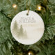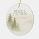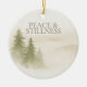 An ivory and warm taupe ornament featuring soft watercolor pines beneath the phrase “Peace & Stillness.” The back displays the year in taupe script with light gold snow dots. A refined neutral design for those who enjoy calm, nature-inspired accents during the holiday season.