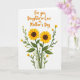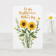 This greeting card features a bright white background that makes the floral artwork feel fresh and open. Two large golden-yellow flowers rise from the lower area, their rich brown centers and sunlit petals drawing the eye like a warm embrace ❤️. Slender deep-green stems curve upward with leafy sprigs, and small yellow buds cluster along the lines, suggesting a gentle, caring bond. The arrangement leans slightly upward in a balanced way, like a quiet gesture of support between family members. Near the top, the message “For you, Daughter-in-Law on Mother’s Day” sits centered in warm orange lettering that looks smooth and flowing. The text remains separate from the flowers, leaving a comfortable pocket of white space between the words and the blooms 🌼. The petals show soft shading and light texture, and the stems have fine, tapered ends that weave neatly through the bouquet. The overall layout places the two biggest blossoms close together, with smaller buds scattered around them like tiny sparks of yellow.