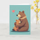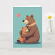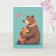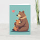 Designed with two cuddly, bear-like characters at the center, the artwork shows a larger deep-brown figure wrapping both arms around a smaller light orange-brown companion in a close, protective hug ❤️. Their eyes are gently closed, and their small, curved smiles suggest a quiet closeness, like a shared secret between close friends. The figures are drawn with soft, rounded shapes and smooth outlines that make them look plush and comforting. Behind them, a wide teal background stretches across the card like calm sky or still water, keeping all attention on the embrace. A short line of text sits near the top in a light color that contrasts clearly against the teal, while a smaller line is placed lower down in a matching tone. In the upper left, a glowing pink heart floats like a little signal of affection 🌼. The larger figure has a ruffled collar detail in a lighter brown, and the smaller one presses its cheek into the hug against the open teal backdrop.