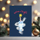 Holiday / Winter / Christmas greeting card. Features a cute narwhal wrapped in a scarf of stars, with his tusk wrapped in christmas lights and a star above like a tree topper. Above the narwhal reads: "warm & bright". The inside greeting says "happy holidays" and is also editable if you prefer a different message.