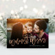 Warmest Wishes Rose Gold Script Photo Overlay Holiday Card
