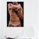 This poster of a breathtaking hot guy celebrates the epitome of strength, allure, and masculinity. Elevate your living space with this captivating visual, showcasing a handsome, muscular, shirtless man who embodies the essence of power and confidence.