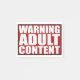 A flat sign text message: Warning, adult content. White characters on a bright red background and a black frame.