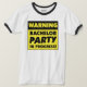 Funny Bachelor Party T-Shirt for groom, best man, groomsan, and all the guys. Design spoofs a warning sign and reads, "Warning, Bachelor Party in Progress." Can be personalized.