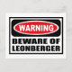 Warning BEWARE OF LEONBERGER Postcard you can customize at www.WarningSignShirts.com and features a red and black warning sign and BEWARE OF LEONBERGER in bold black letters to warn the world. You can also customize your own warning sign Postcard with the text you want.