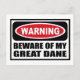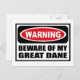 Warning BEWARE OF MY GREAT DANE Postcard you can customize at www.WarningSignShirts.com and features a red and black warning sign and BEWARE OF MY GREAT DANE in bold black letters to warn the world. You can also customize your own warning sign Postcard with the text you want.
