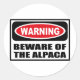 Warning BEWARE OF THE ALPACA Sticker you can customize at www.WarningSignShirts.com and features a red and black warning sign and BEWARE OF THE ALPACA in bold black letters to warn the world. You can also customize your own warning sign Sticker with the text you want.