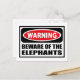 Warning BEWARE OF THE ELEPHANTS Postcard you can customize at www.WarningSignShirts.com and features a red and black warning sign and BEWARE OF THE ELEPHANTS in bold black letters to warn the world. You can also customize your own warning sign Postcard with the text you want.