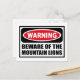 Warning BEWARE OF THE MOUNTAIN LIONS Postcard you can customize at www.WarningSignShirts.com and features a red and black warning sign and BEWARE OF THE MOUNTAIN LIONS in bold black letters to warn the world. You can also customize your own warning sign Postcard with the text you want.