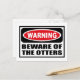 Warning BEWARE OF THE OTTERS Postcard you can customize at www.WarningSignShirts.com and features a red and black warning sign and BEWARE OF THE OTTERS in bold black letters to warn the world. You can also customize your own warning sign Postcard with the text you want.