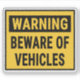 Warning Beware of Vehicles Sticker
