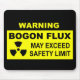 A black and yellow warning sign with text reading, "WARNING, BOGON FLUX, MAY EXCEED SAFETY LIMIT." A radioactive material warning symbol also appears. The bogon is an elemental particle which carries the property of bogosity, or being bogus (i.e., fake of bad). All humans are natural low-level bogons emitters. Emission levels fluctuate over time. Politicians, other individuals such as used car salesmen, are high level sources of bogons. When such individuals emit extremely high levels of bogons, as when making campaign promises, a bogon flux may occur. A bogon flux can be very dangerous to those in the area. Bogon was originally hacker jargon having to do with bogus addresses on a computer network.
