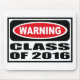 Warning CLASS OF 2016 Mousepad you can customize at www.WarningSignShirts.com and features a red and black warning sign and CLASS OF 2016 in bold black letters to warn the world. You can also customize your own warning sign Mousepad with the text you want.