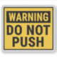 Warning Do Not Push Sticker