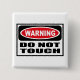 Warning DO NOT TOUCH Button you can customize at www.WarningSignShirts.com and features a red and black warning sign and DO NOT TOUCH in bold black letters to warn the world. You can also customize your own warning sign Button with the text you want.