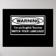 Warning English Teacher Poster