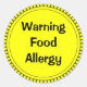 Plain sticker with text "Warning Food Allergy" You are able to edit the text and background color during checkout.