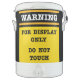 Warning For Display Only Do Not Touch word lettering phrase sign style with Black and White lettering on black and yellow background colors along with a couple of orange stripes for a true signage feel and look.