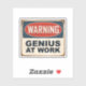 Warning Genius at Work Sticker