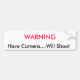 Bumper sticker featuring text "Warning, Have Camera ...Will Shoot".