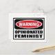 Warning OPINIONATED FEMINIST Postcard you can customize at www.WarningSignShirts.com and features a red and black warning sign and OPINIONATED FEMINIST in bold black letters to warn the world. You can also customize your own warning sign Postcard with the text you want.
