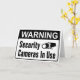 Something we are used to seeing is security cameras and this design is a sign warning you they are in use. This design is a warning sign that says warning security camera in use. It is like the signs you would be used to seeing everyday. This warning security camera in use design looks great on these greeting cards