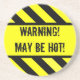 "Warning! May be hot!" Hot warning sign coaster. You like it hot?