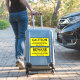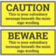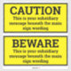 Construction site warning signs. Two cautionary warning signs. Change the wording to display your own message on each. Very large size. 14 inches wide.
