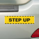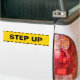 Warning Sticker Step Up. Black bars against yellow background with big black text "Step Up". This warning bumper sticker is fully customizable, add your text(s) and images!