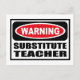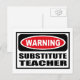 Warning SUBSTITUTE TEACHER Postcard