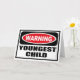 Warning YOUNGEST CHILD Greeting Card you can customize at www.WarningSignShirts.com and features a red and black warning sign and YOUNGEST CHILD in bold black letters to warn the world. You can also customize your own warning sign Greeting Card with the text you want.