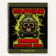 Personalize this awesome zombie notebook with your name! Perfect for zombie and horror movie fans! Skull wearing a hazmat helmet with green toxic background.