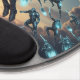 The plastic backing is nice and sturdy. The grippy pads underneath keep the mouse pad where I put it on my table. The pad the mouse sits on is cut well to fit the backing. The wrist pad is perfectly soft, supportive, and thick. I'm left-handed, and this mouse pad works just as well for me as it does for my right-handed friends. I'm the designer of HippieClecticHope products. I'm blown away by how well my intricate fractals turn out on the tangible items in the Zazzle Marketplace. This particular mouse pad ***appears*** like a 3D object... A mathematically-engineered rainbow black opal, inlaid under transparent fabric...
