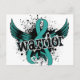 You are a Ovarian Cancer warrior. Wear your Valor proudly with our eye-catching Warrior t-shirts, merchandise, and apparel featuring a striking teal Ovarian Cancer awareness ribbon centered within a pair of distressed wings, a graffiti-splashed background, and grunge text. Empowering gift idea for the Ovarian Cancer warrior in your life.