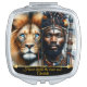 A fierce African warrior stands tall alongside a majestic lion, embodying the spirit of courage and unity. Adorned with traditional beads and tribal attire, the warrior's gaze is intense and focused. The lion, with its striking blue eyes and powerful presence, symbolizes bravery and loyalty.