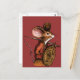 This warrior mouse has a small wooden shield and a toothpick sized sword. The cute mouse with large ears has a determined look on his face and is wearing a protective cloth shirt.