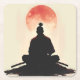 Bold samurai silhouette coaster against a dramatic red sun, capturing the essence of warrior meditation and Japanese martial spirit.