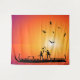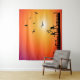 Prehistoric Petroglyphs Viking Ship and prehistoric birds during sunset warrior silhouettes montage wall hanging. Ancient cave Norway drawings. Colorful sunset background with birds in the background and fighting warriors on a viking ship rock and cave design. Inspired by petroglyphs and ancient art throughout the world.