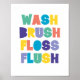 WASH BRUSH FLOSS FLUSH Bathroom Sign