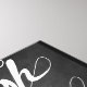 A fancy laundry room themed design. A chalkboard style sign which says wash, dry, fold repeat in a cute whimsical swirly font.