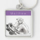 Original wash painting with India ink on Wenzhou paper, after a photo of a Monkey on a temple roof. Design on square metal keychain with name + purple background. Matching home products, clothing, electronics, greeting card and more... Perfect for monkey lovers, Chinese New Year of the Monkey or birthday (people born in Monkey year). -------------"The Monkey (猴) is the ninth of the 12-year cycle of animals which appear in the Chinese zodiac related to the Chinese calendar. The Year of the Monkey is associated with the Earthly Branch symbol 申. " - Wikipedia Persons born within these date ranges can be said to have been born in the Year of the Monkey, while also bearing its governing elemental sign (that is, Metal): 2 February 1908 – 21 January 1909 = Earth Monkey ; 20 February 1920 – 7 February 1921: Metal Monkey ; 6 February 1932 – 25 January 1933: Water Monkey ; 25 January 1944 – 12 February 1945: Wood Monkey ; 12 February 1956 – 30 January 1957: Fire Monkey ; 30 January 1968 – 16 February 1969: Earth Monkey ; 16 February 1980 – 4 February 1981: Metal Monkey ; 4 February 1992 – 22 January 1993: Water Monkey ; 22 January 2004 – 8 February 2005: Wood Monkey ; 8 February 2016 – 27 January 2017: Fire Monkey ; 26 January 2028 – 12 February 2029: Earth Monkey ; 12 February 2040 – 31 January 2041: Metal Monkey ; 1 February 2052 – 18 February 2053: Water Monkey" ------- WIKIPEDIA