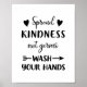 This cute, hand lettered wash your hands sign bathroom art poster includes the quote: "Spread kindness, not germs. Wash your hands." Use as a bathroom sign in your home or business to inspire the spread of kindness while also encouraging proper hygiene.