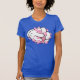 I love wearing a reprint of my colored pencil drawing of Annie the cat looking over the hillside. My illustration is based on a picture I took of Annie the manx cat. The printing turned out lovely, and the shirt is soft and thick. The American Apparel shirt run on the smaller size, so I always order a large or extra large.