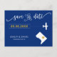 You chose a special place for your wedding. Now it's time to celebrate it with this keepsake save the date postcard, featuring a silhouette map and a tiny plane headed to your destination. To move the heart to the place of your wedding, click personalize and then "customize further.”