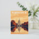 Capture the historical gravitas of Washington D.C., USA, with this striking retro travel postcard. The design beautifully highlights the U.S. Capitol Building reflected in the Capitol Reflecting Pool, framed by autumn-toned trees. The warm, sunset-hued color palette gives the artwork a sophisticated, vintage feel, perfect for celebrating American landmarks or collecting unique capital city art.