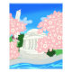 Whimsical image of the Jefferson Memorial and the Washington Monument among the cherry blossoms.